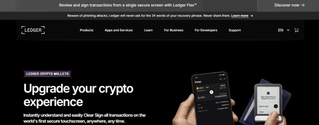 Ledger is one of the well-known cold crypto wallets that offers plans ranging from 79 dollars to 399 dollars, supporting 5K+ assets. It integrates with popular software wallets like Crypto.com and Guarda and can be accessed through a mobile app, a desktop app, and a browser.